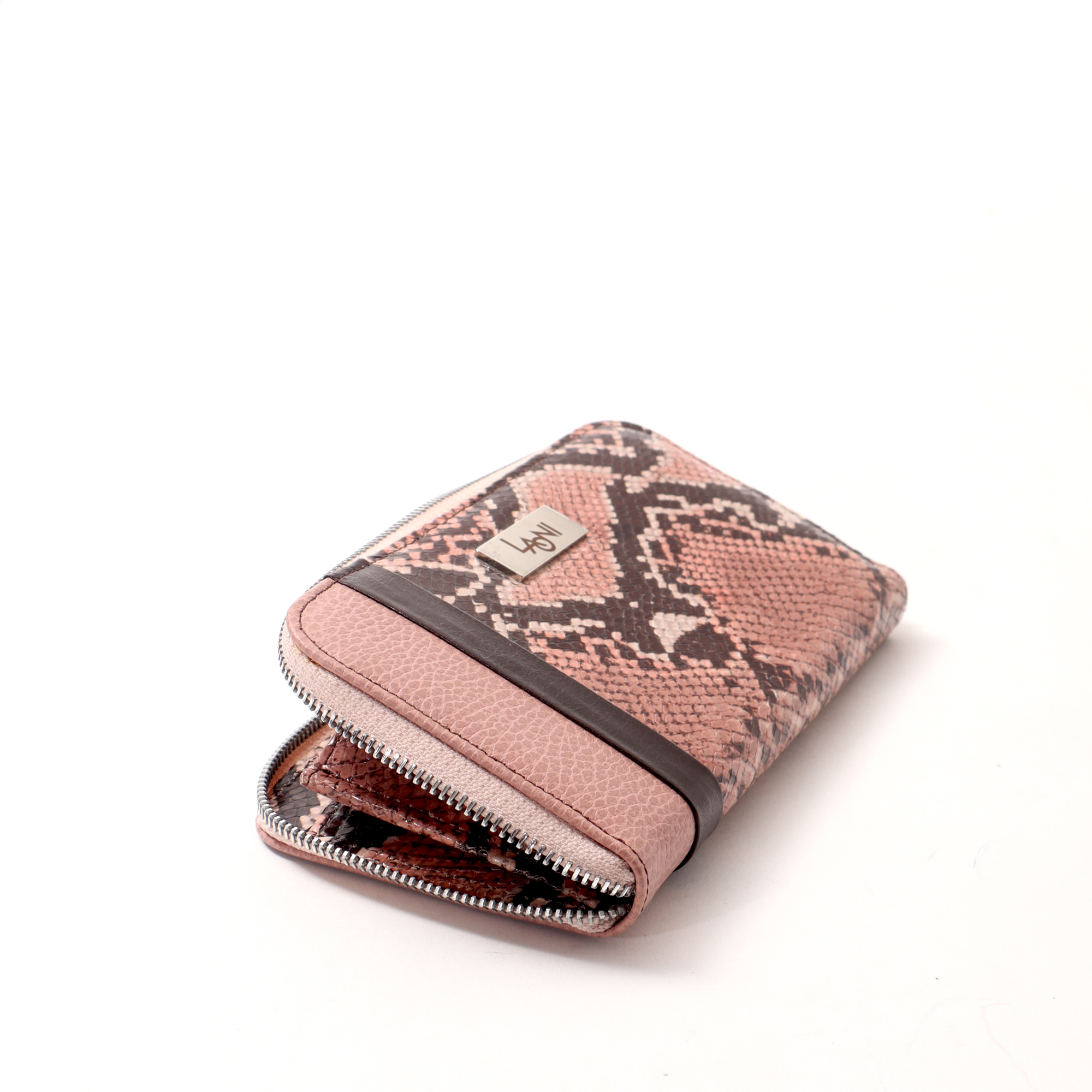 Color: mauve snake pattern and dark brown with bronze shine