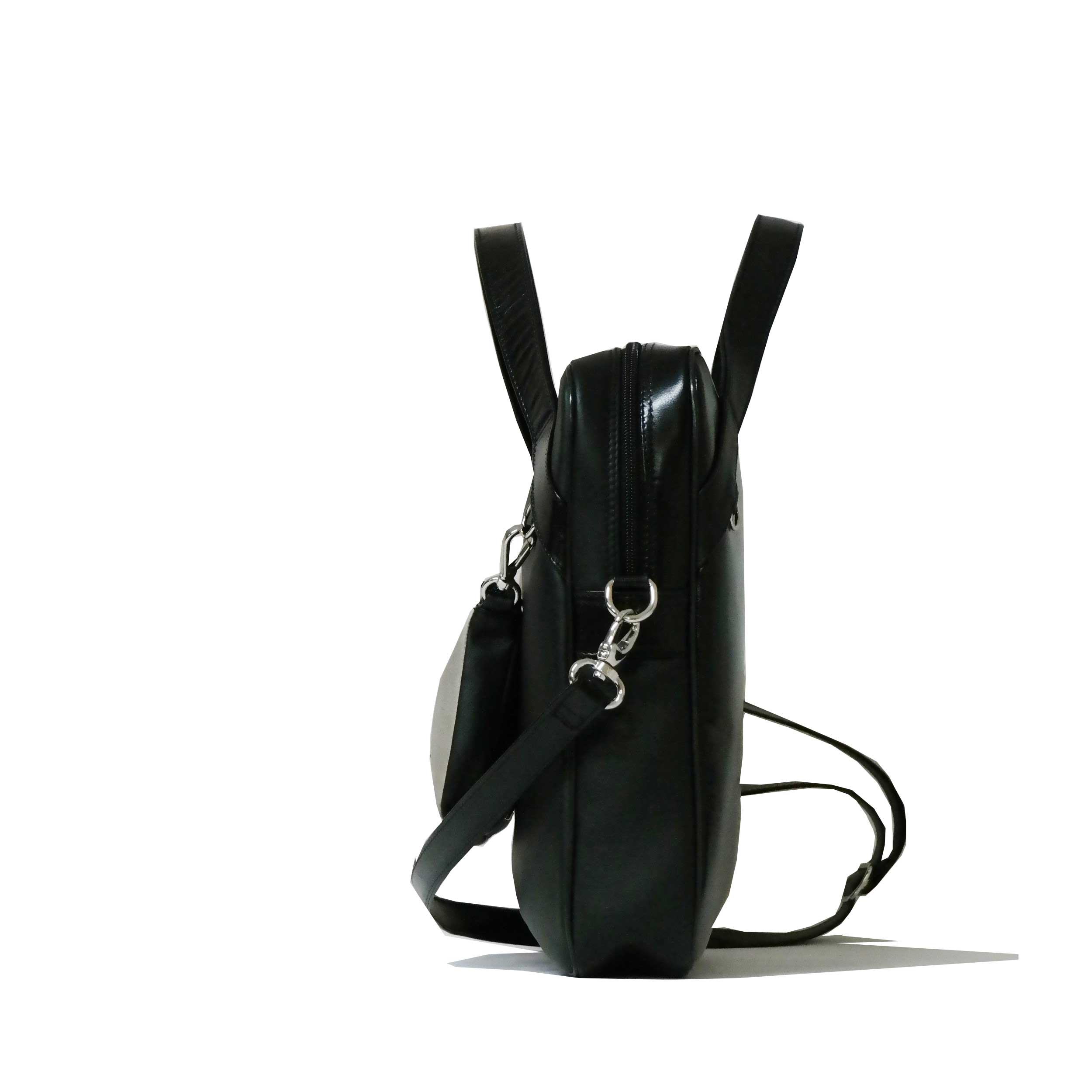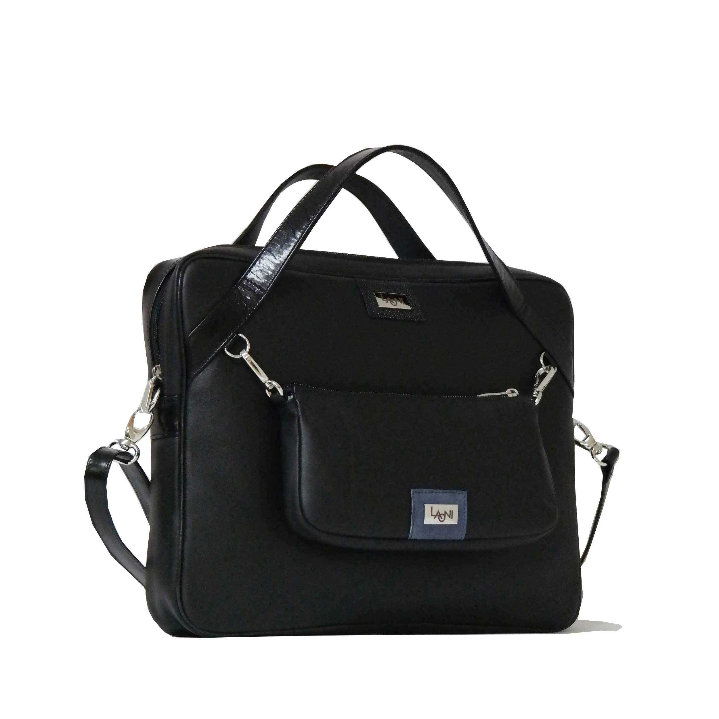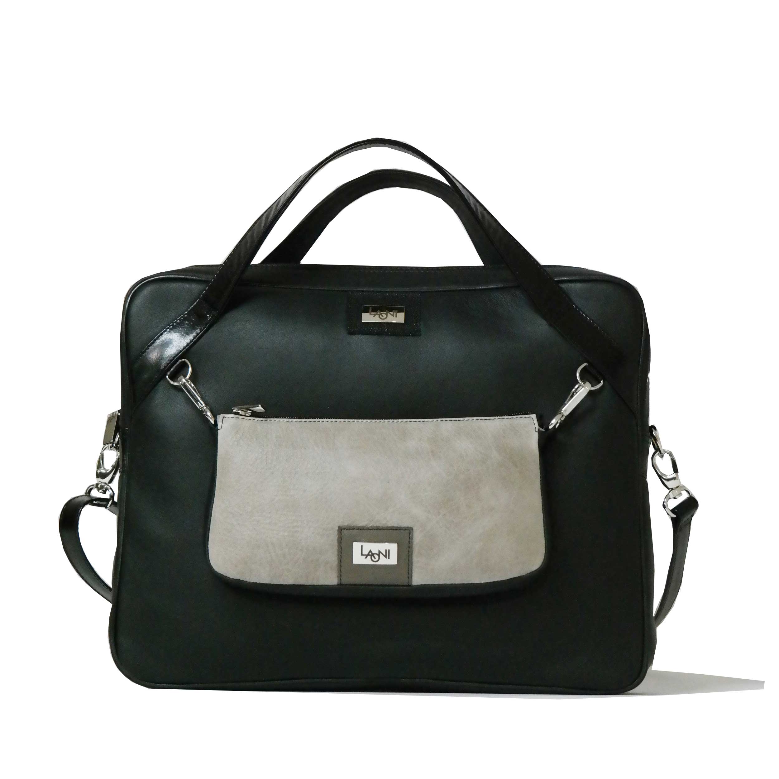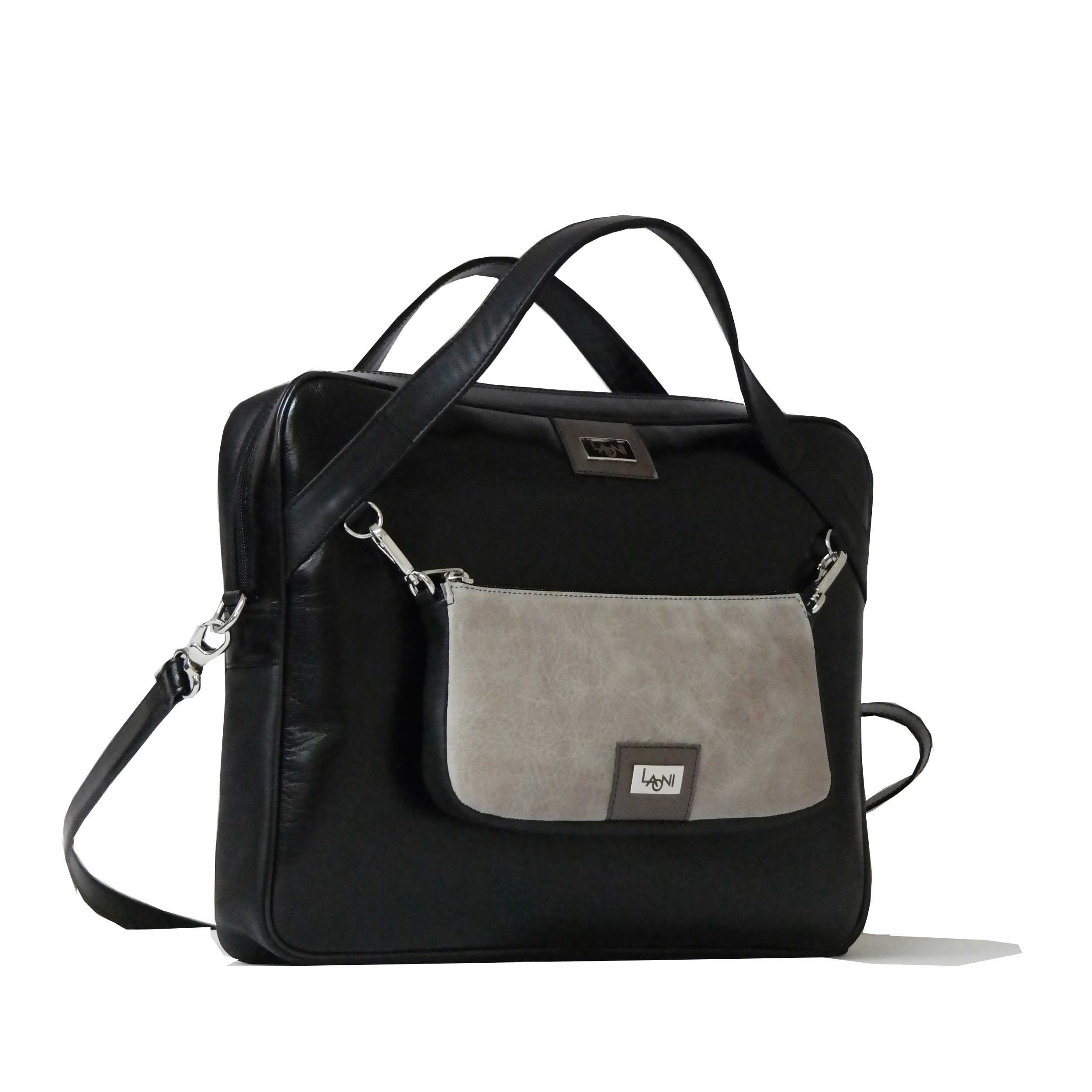 A KAMÉLEON Notebook kollekcióba tartozik ez a modell. Mindkét táskarész cipzárral záródik, a kisebb táskát egy belső válaszfal két részre osztja. A nagyobb táskán belül található egy nagy zseb, egy mobiltartó. egy lapos és egy cipzáras zseb is. Vállszíja állítható hosszúságú.